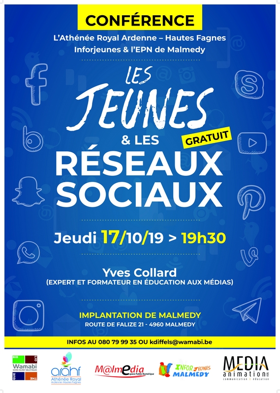 Ce jeudi 17 octobre 2019 à 19h30, l’Athénée Royal Ardennes – Hautes Fagnes, Inforjeunes et l’EPN de Malmedy ont le plaisir d’accueillir Yves Collard (expert et formateur en éducation aux médias). Cette conférence-débat nous permettra de mieux comprendre les jeunes et les adolescents, leurs usages d’Internet, des smartphones et des […]